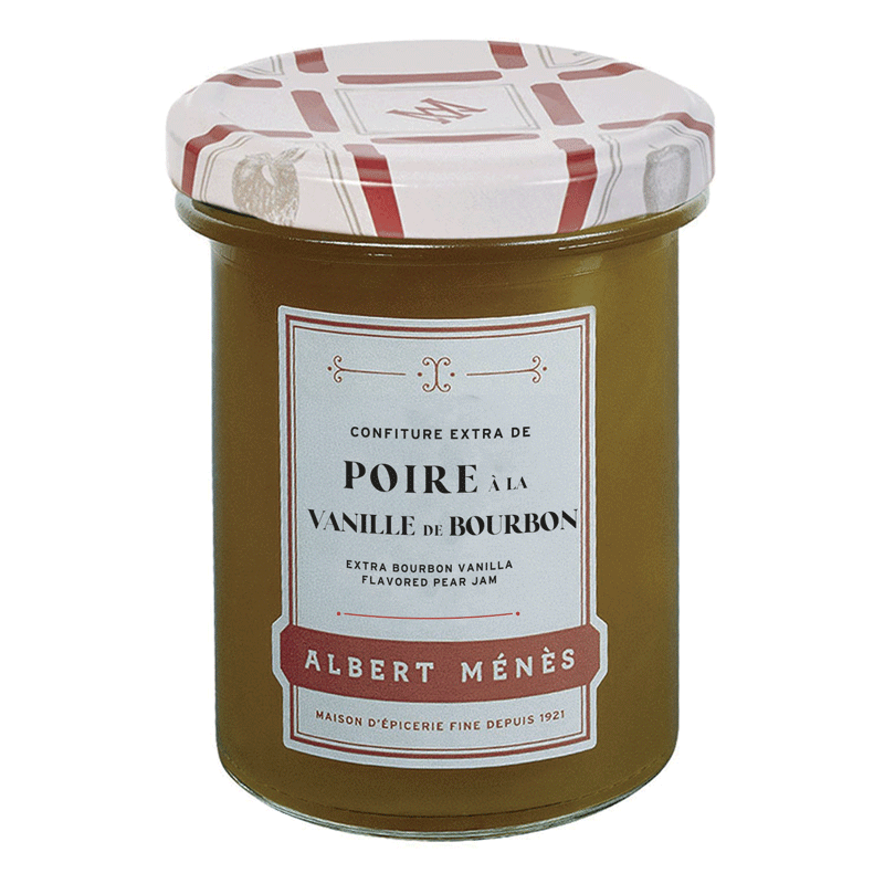 Cette confiture festive associe la tendresse de la poire, à l'élégance de la vanille de Bourbon, pour un mariage unique et subtil.