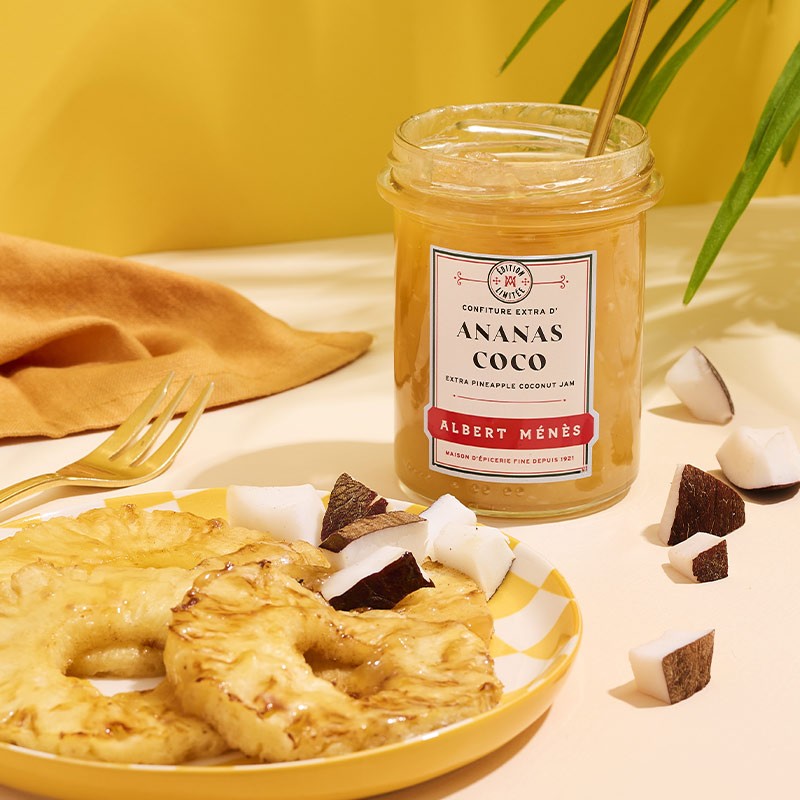 - La Confiture ananas-coco : une explosion exotique où la chair fondante de l'ananas rencontre la douceur de la noix de coco, pour un voyage gourmand et exotique